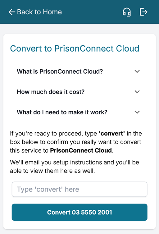 If you already have a PrisonConnect service with us you can easily convert it to a PrisonConnect Cloud service to save you having to get a new number registered with the prison.